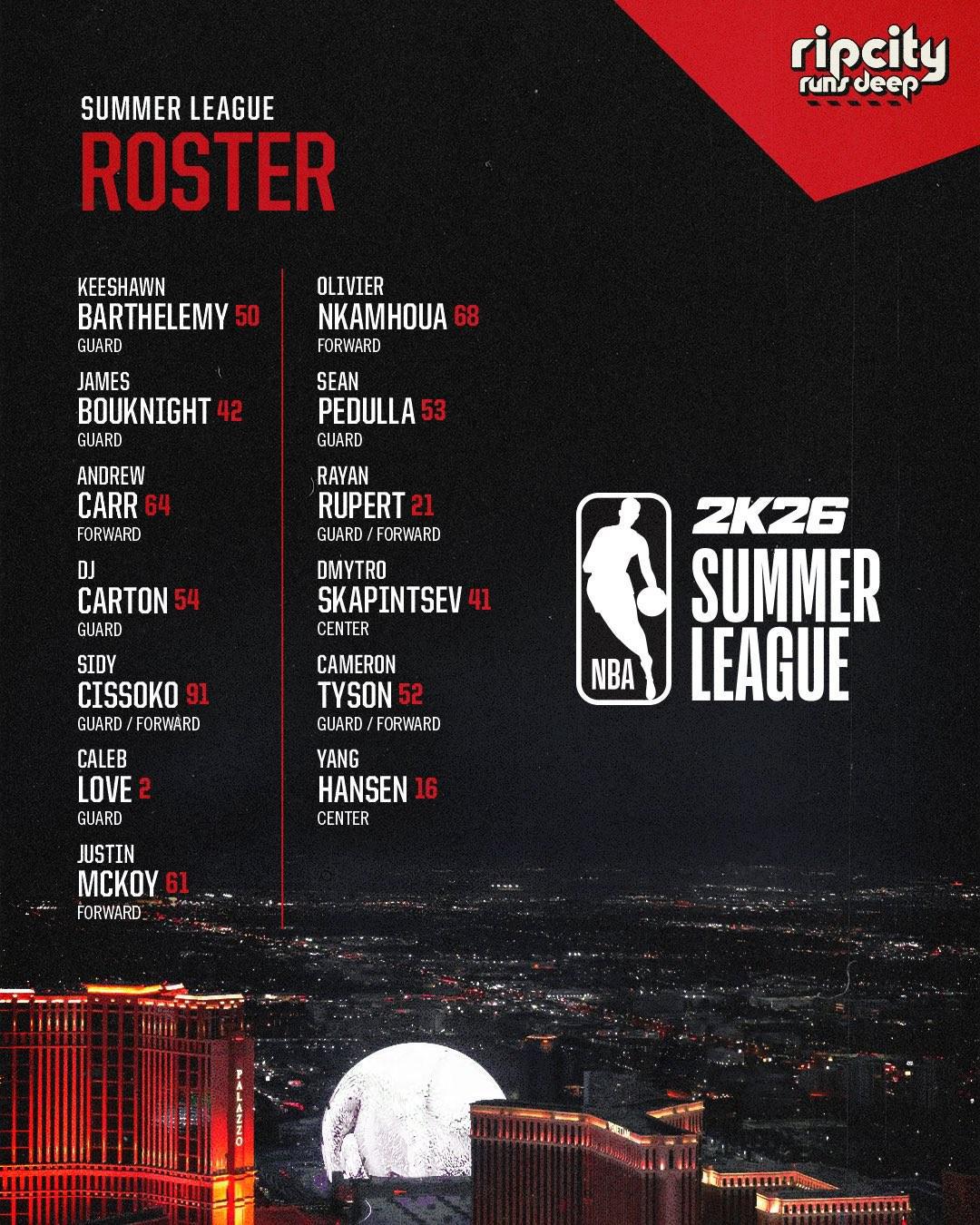 北京时间7月5日,波特兰开拓者公布了夏季联赛大名单,中国球员杨瀚森领衔。
